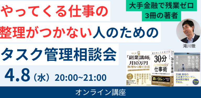 【お知らせ】4/8(水)に『やってくる仕事の整理がつかない人のためのタスク管理相…